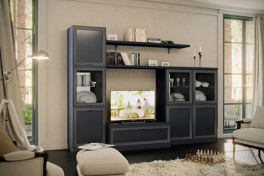 - Полка АГ-026.03 в композициях гостиной устанавливается по общему принципу: с одной стороны она укладывается на крышки модулей АГ-260.01 или АГ-260.02, с другой — может соединяться как с навесными модулями АГ-418.03 и АГ-418.04, так и с напольными шкафами АГ-224.13 и АГ-224.20.
