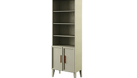 В нижней части — шпонированная полка за двумя распашными дверцами, в верхней части стеллажа — три шпонированные открытые полки. Все полки съемные;