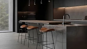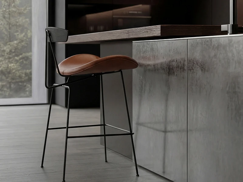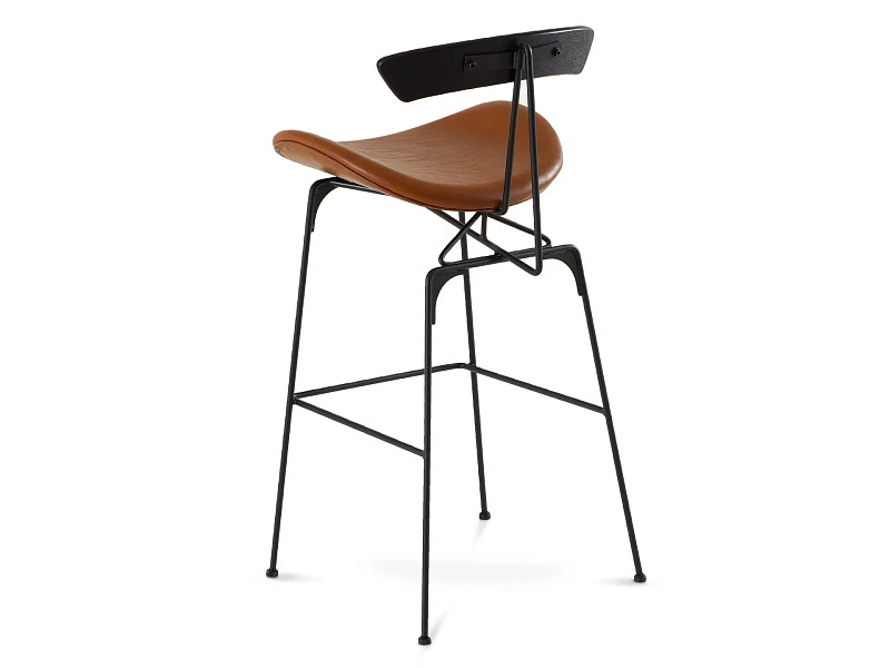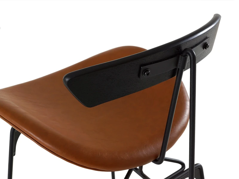 Материал обивки - экокожа, материал ножек и каркаса - сталь с порошковым покрытием черного цвета. Материал спинки - массив дерева в дубовом шпоне черного цвета. На ножках предусмотрены специальные подпятники, которые предотвращают скольжение и повреждения напольного покрытия.