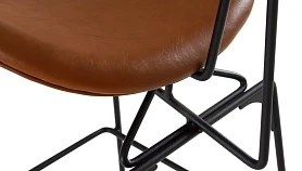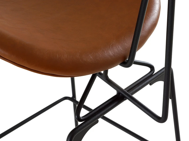 Сбалансированный дизайн стула Bonni сочетает высокий комфорт и долговечность. Овальное сиденье из прочной экокожи приподнимается по краям, обеспечивая удобную посадку. Черная металлическая рама поддерживает гнутую спинку из дерева. Которая отвечает за опору корпуса. Четыре ножки из металла дополнительно укреплены перекладиной, которую можно использовать как подставку для ног. Закругленные края придают модели эргономичность, безопасность, пластичность.