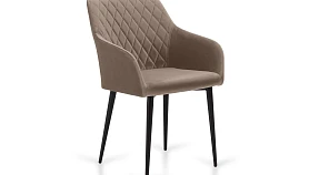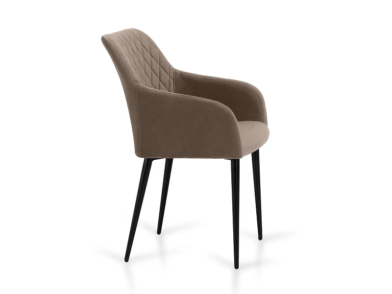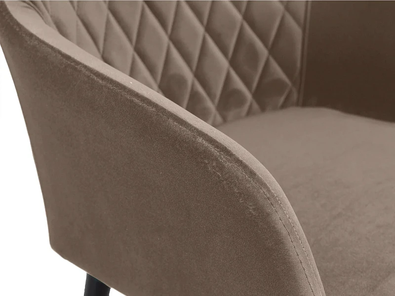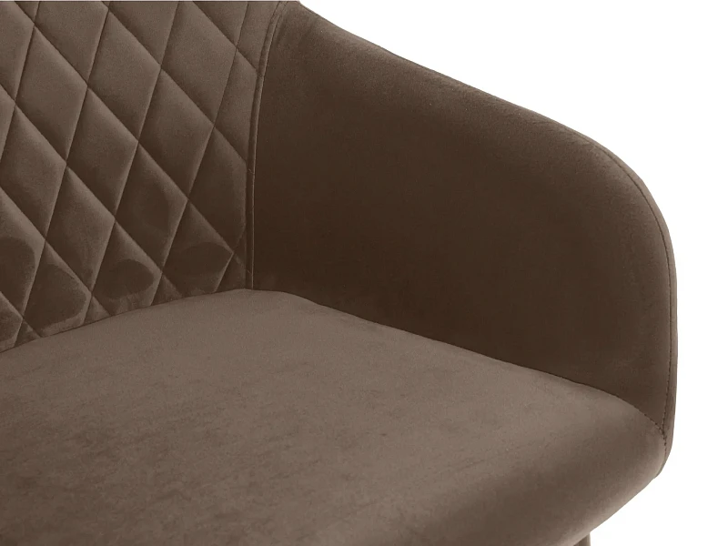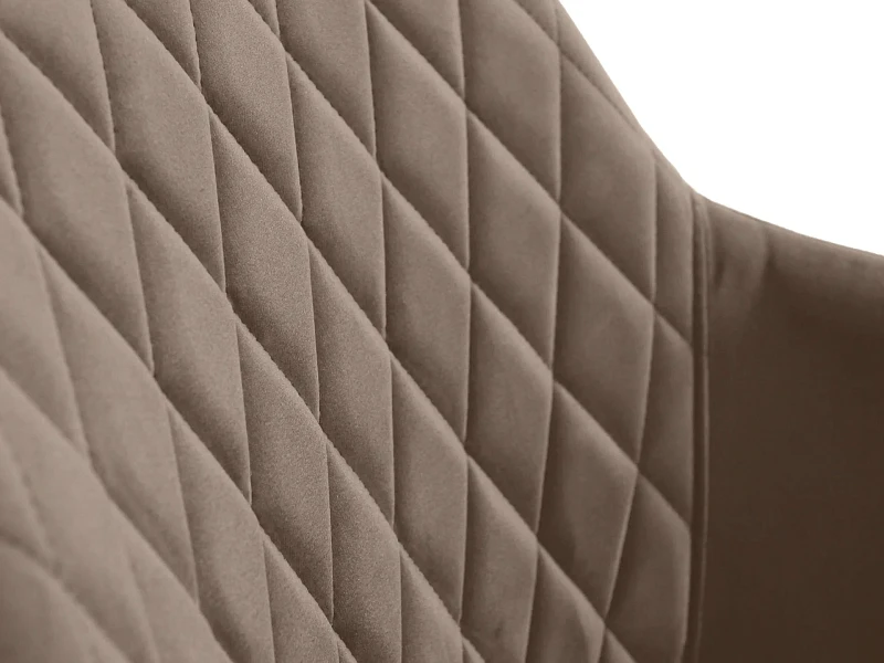 Роскошный и уютный стул в стиле арт-деко. Смотрится дорого, стильно и эффектно. Оно создано, чтобы очаровывать с первого взгляда. Плавные линии, изящные ножки, просторное сиденье и высокие подлокотники делают модель невероятно удобной для отдыха. Стильная отделка ромбом на спинке и сиденье в сочетании с благородным бархатом создает неповторимые переливы и придает стулу особую утонченность. Мягкий бархатистый велюр, высококачественный материал с повышенной износостойкостью. В качестве наполнителя используется литой (формованный) пенополиуретан высокой плотности. Металлические ножки черного матового цвета. На ножках предусмотрены специальные пластиковые накладки, которые придают стулу дополнительную устойчивость и защищают пол от царапин.