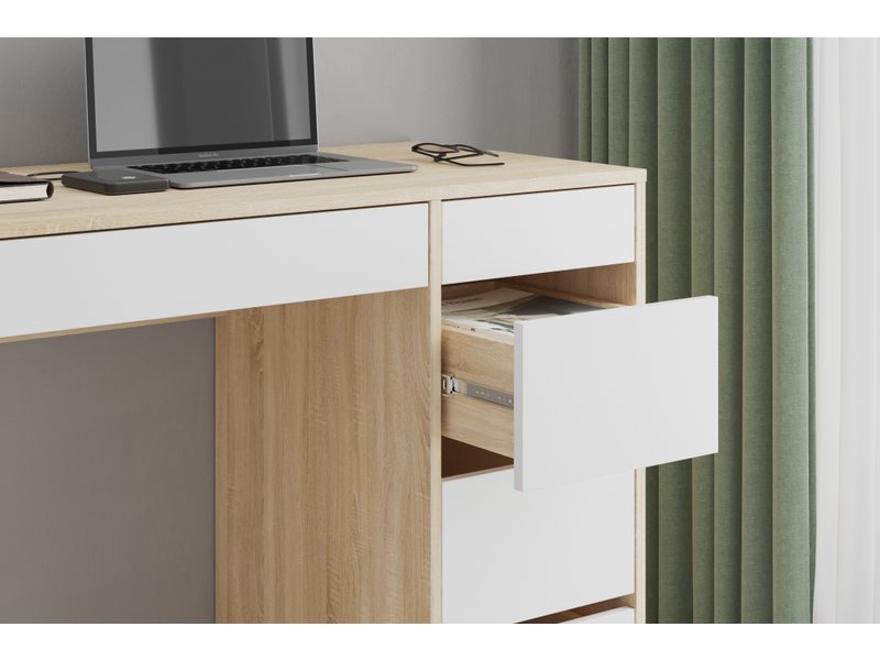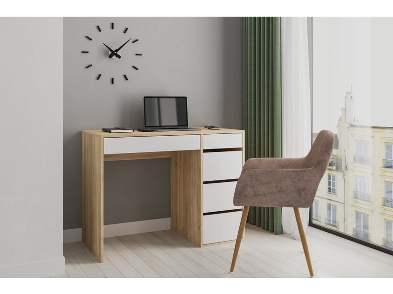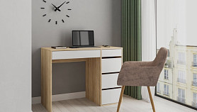 Письменный стол "Дантон-6" - воплощение скандинавского минимализма. Классические строгие линии и лаконичный дизайн, оформленный в спокойных натуральных оттенках, делают эту модель уместным дополнением и рабочего кабинета, и детской комнаты. Стол комбинируется с другими комплектами мебели и отлично вписывается в интерьеры в стиле сканди, лофт или модерн.