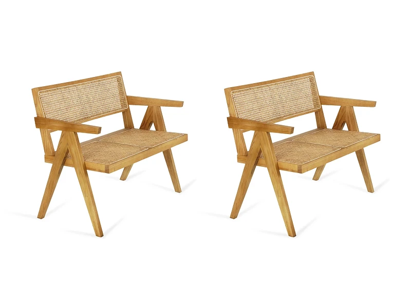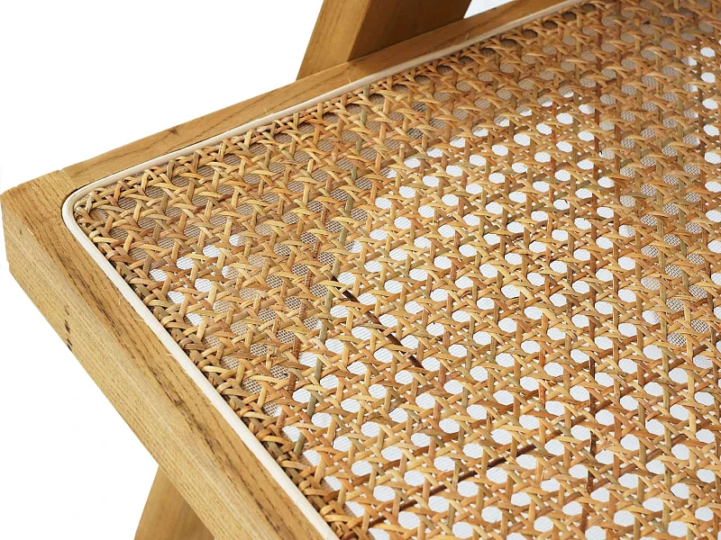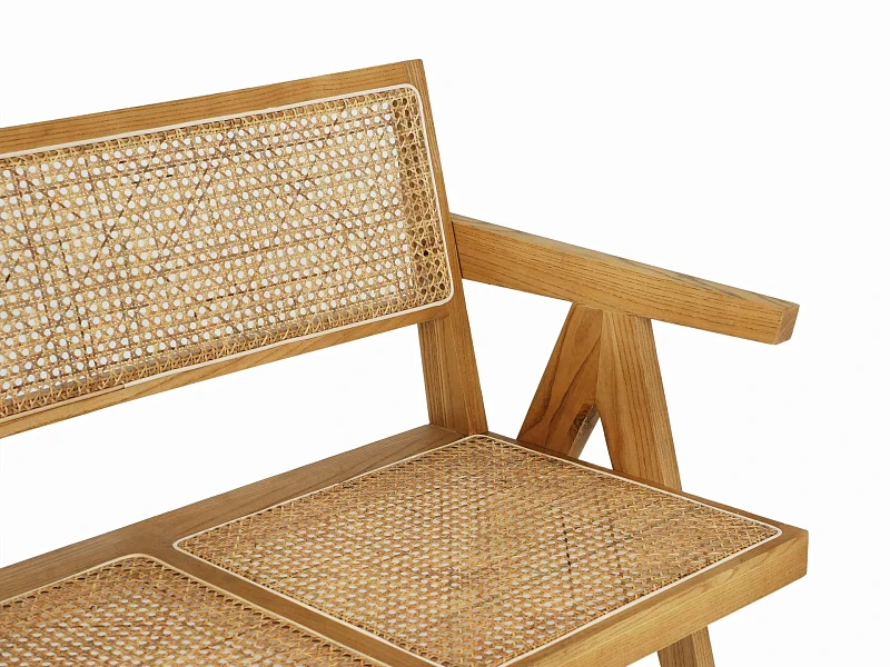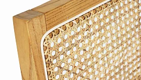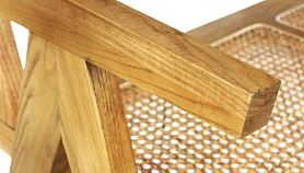 Материал каркаса и ножек - массив вяза, материал сиденья и спинки - натуральный ротанг. Не рекомендуется использование на открытом воздухе и контакт с водой.
