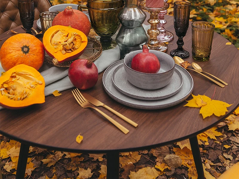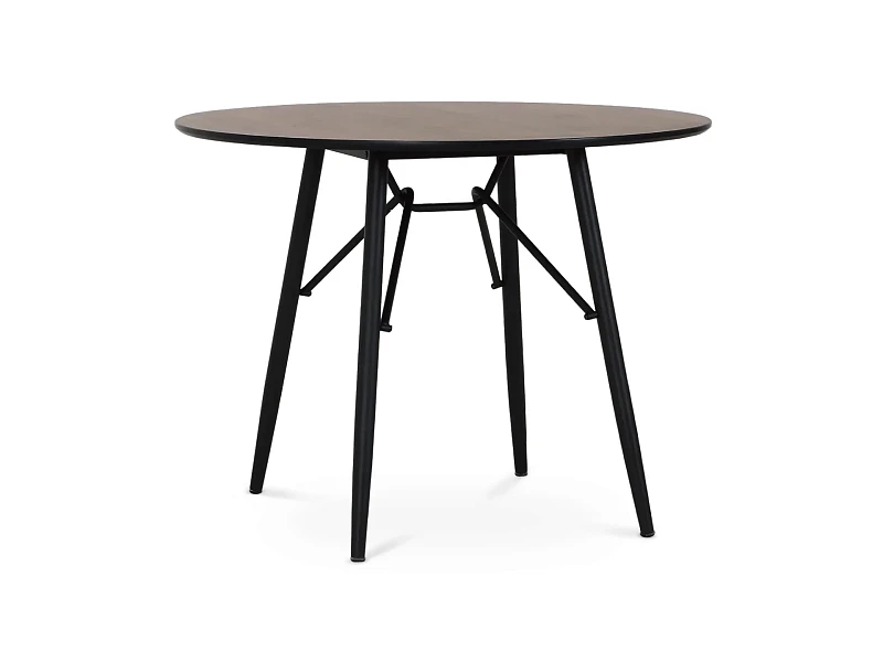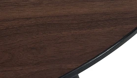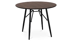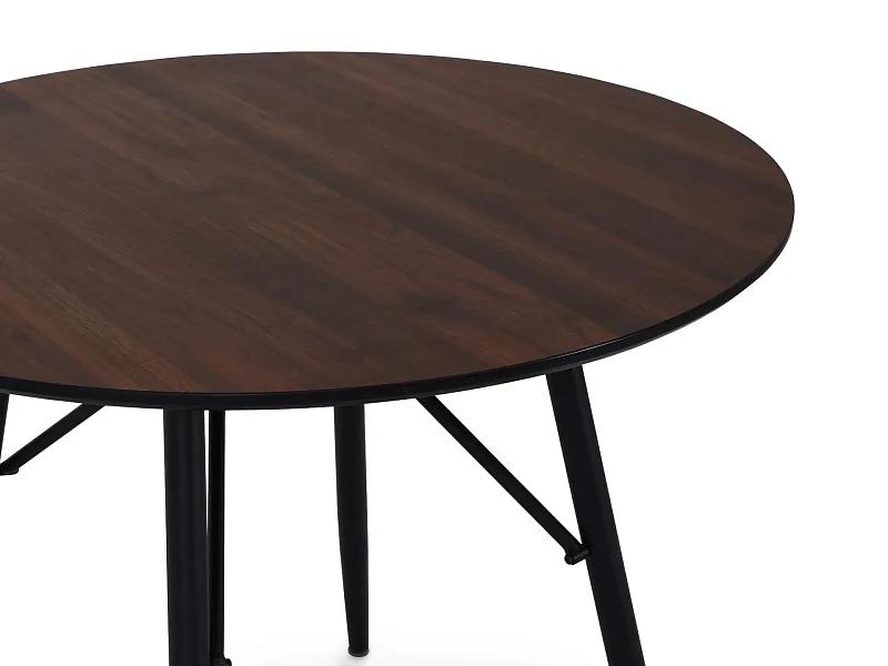 Обеденный стол в скандинавском стиле. Столешница из МДФ с меламиновым покрытием. Фактура натурального шпона, цвет тёмно-коричневый. Меламиновое покрытие отличается высокой прочностью, устойчиво к механическим воздействиям, не боится контакта с водой и моющими средствами, не выгорает.
