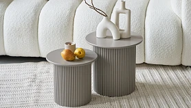 Линейка журнальных столиков Mia — стильное дополнение современного интерьера. Дизайн тяготеет к минималистичности и универсальности. В фокусе внимания простая и элегантная архитектура. Эргономичная круглая столешница из МДФ поддерживается цилиндирическим основанием с рифлением. Что добавит фактурного разнообразия и ритма в пространство.