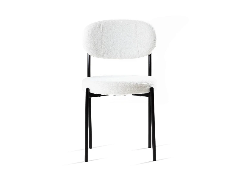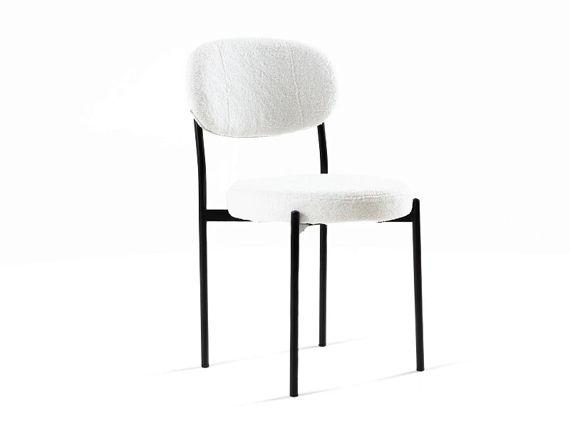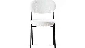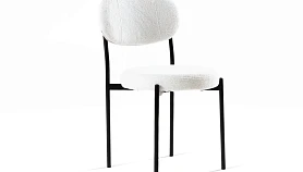 Материал обивки - искусственный мех. Прочный металлический каркас. Металлические опоры черного матового цвета. На опорах предусмотрены защитные пластиковые накладки, которые придают стулу дополнительную устойчивость и защищают пол от царапин.