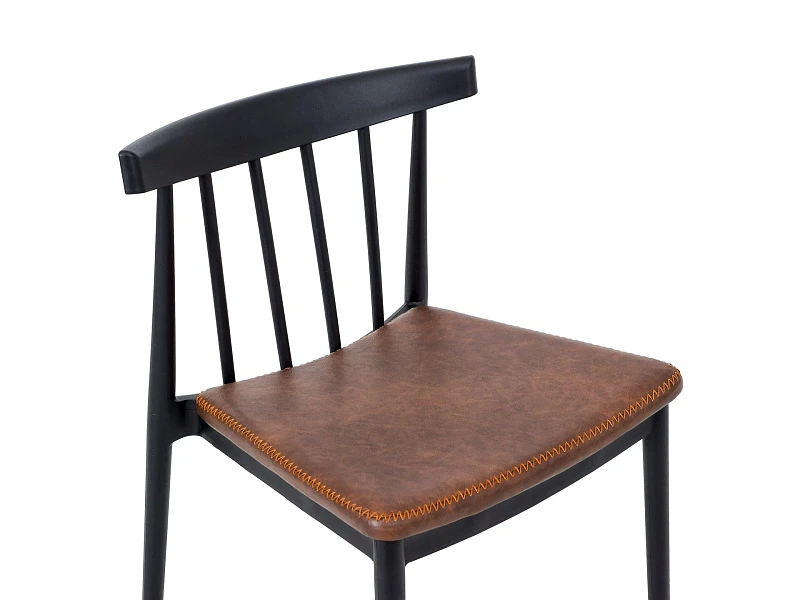 Сиденье из полипропилена. Обивка - экокожа. Каркас - пластик. Наличие подпятников предохраняющих от царапания пола.