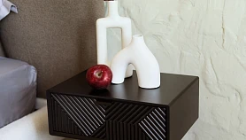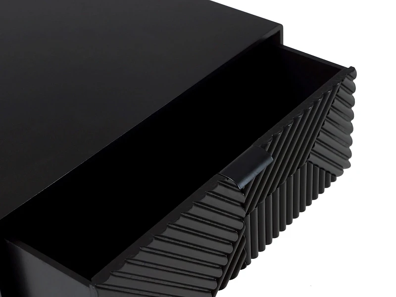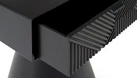 Фасад вкладного ящика украшен узором, который формируют трендовую «гофрированность». Скульптурная тумба Parex сама по себе является привлекательным элементом, который поможет в декорировании стильного пространства. Также она дает простор для проявления креативности. Сочетайте ее с различными вазами, лампами, статуэтками, подсвечниками, чтобы подчеркнуть уникальность интерьера.