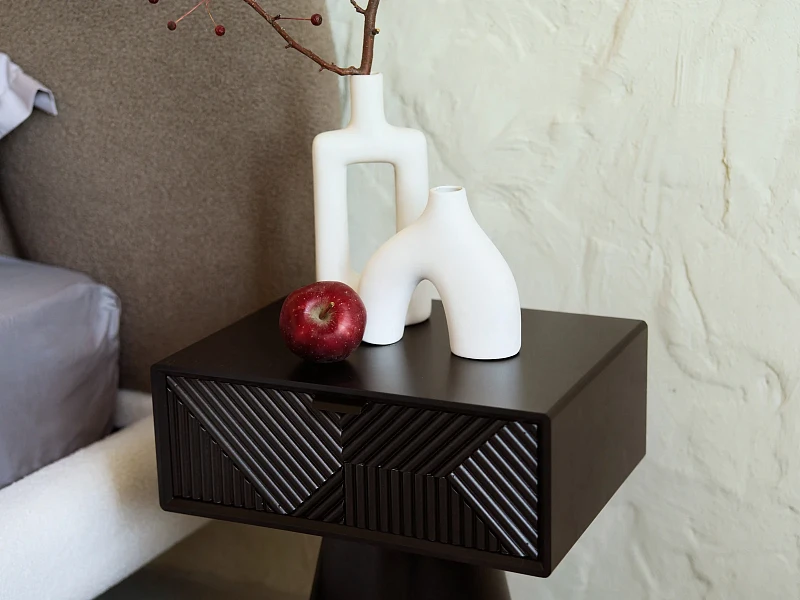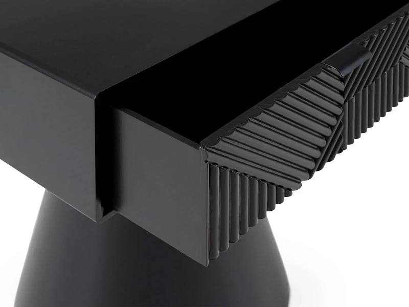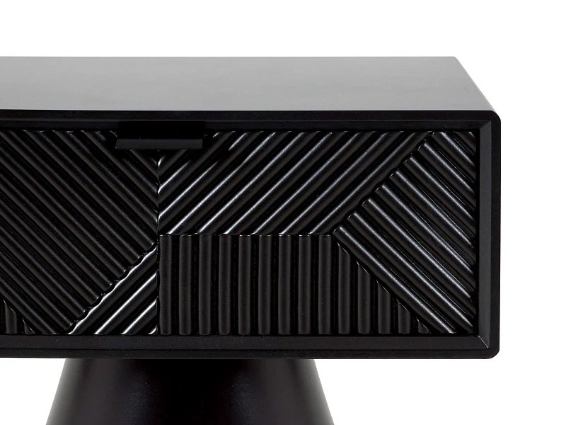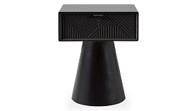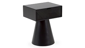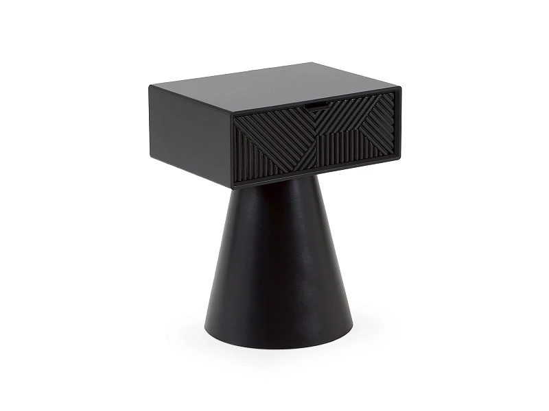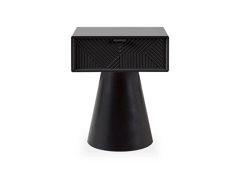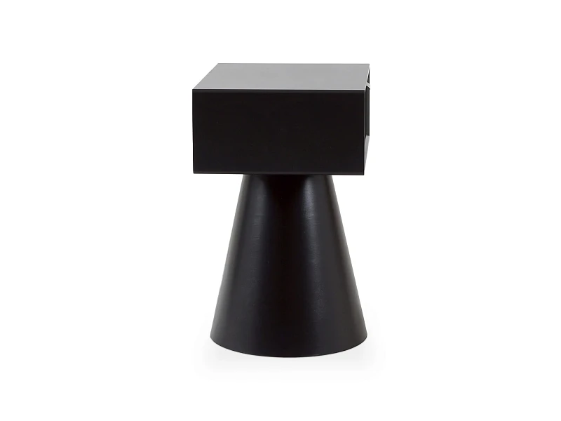 Тумба прикроватная Parex отличается художественной эстетикой. Фишка — игра геометрии. Прямоугольная столешница с вкладным ящиком изящно балансирует на верхушке конуса. Можно использовать как необычную прикроватную тумбу, элегантный приставной столик в гостиной, вместо консоли, полочки для мелочей в прихожей.