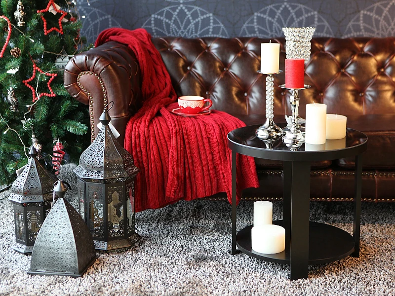 Круглый журнальный стол. Cтолешница декорирована цветным стеклом.