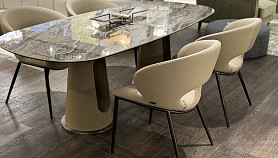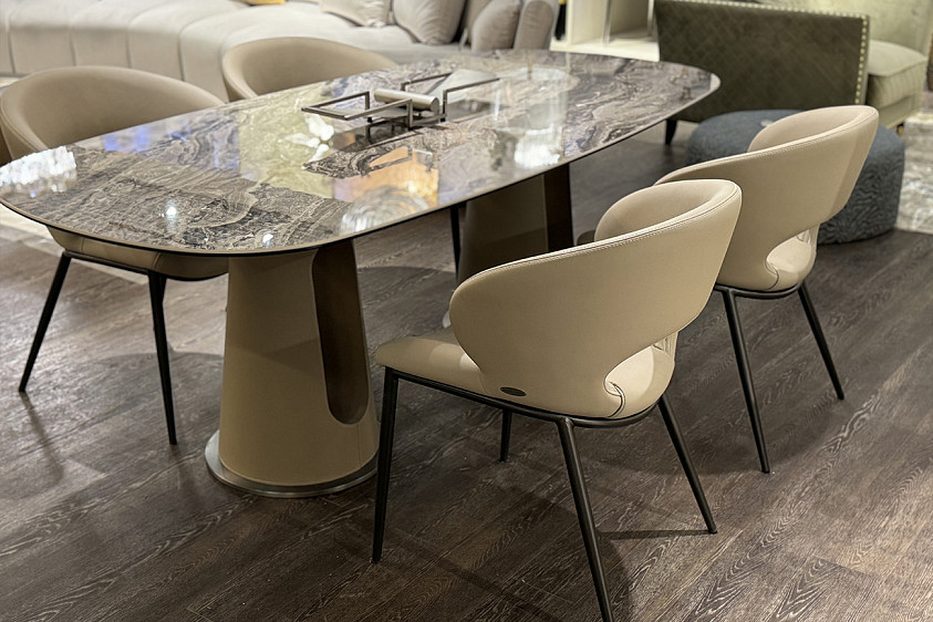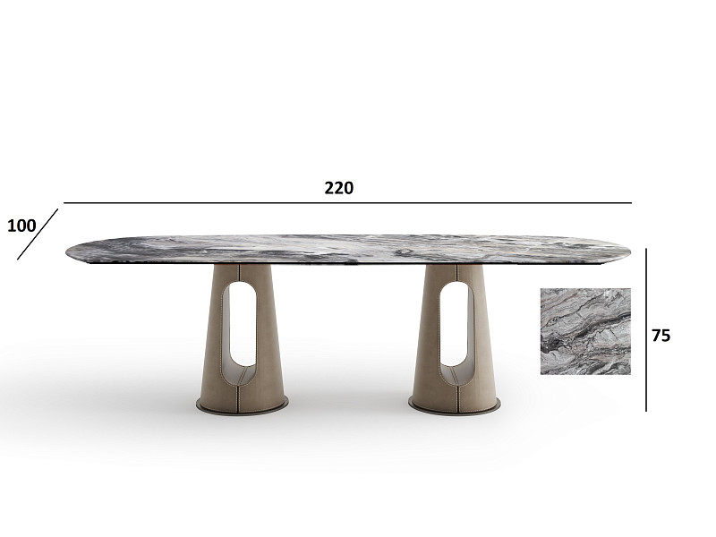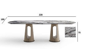 160KD-60074 Стол обеденный, керамика Венециан Браун (Venetian Brown), экокожа бежевая 220*100*75см