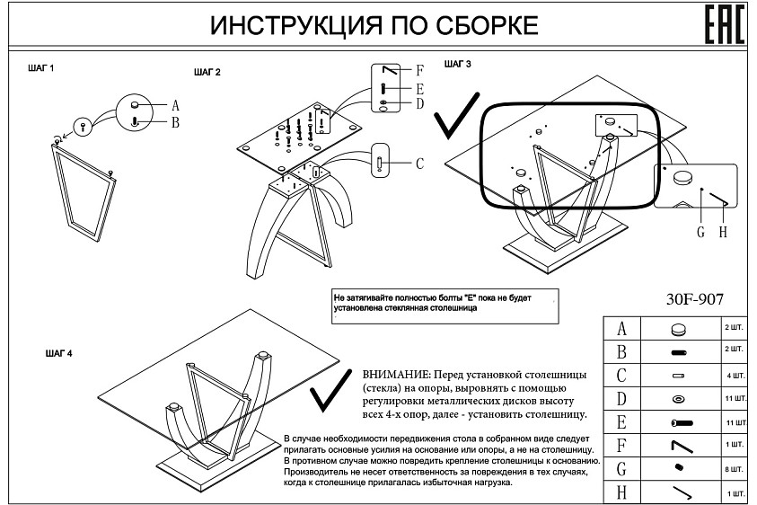 30F-907 Стол обеденный со стеклом бежевый 171*100*76см