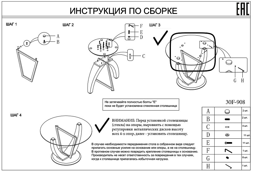 30F-908 Стол обеденный со стеклом бежевый d122*76см