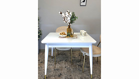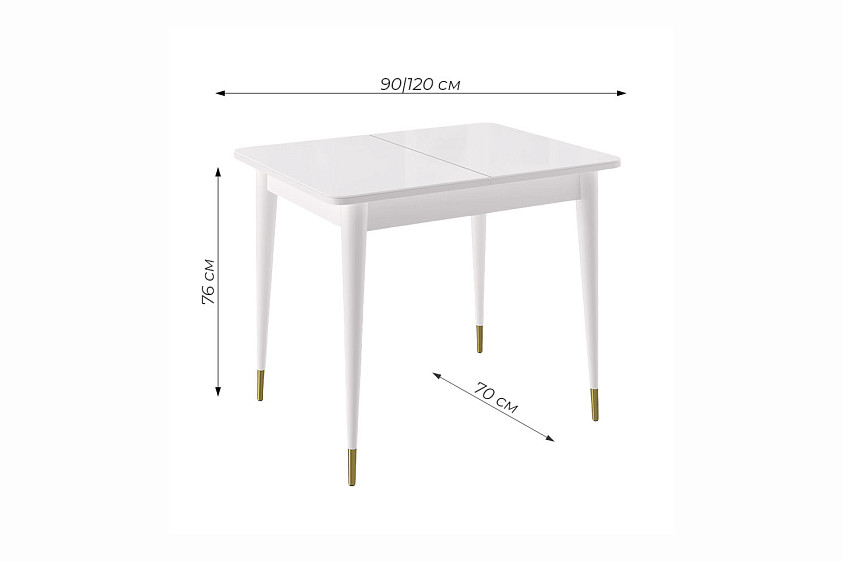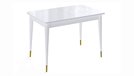 Стол обеденный Мане прямоугольный раздвижной К1100 опоры белого цвета с металлическими наконечниками, столешница - стекло белый глянец.