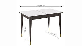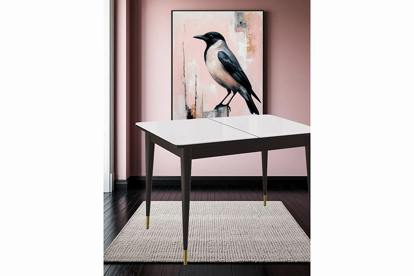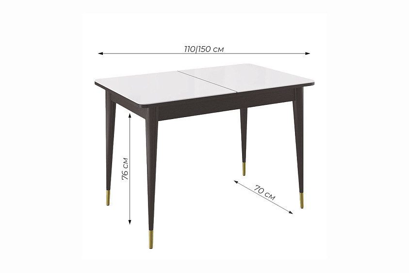 Стол обеденный Мане прямоугольный раздвижной К1100 опоры цвета венге с металлическими наконечниками, столешница - стекло белое глянец.