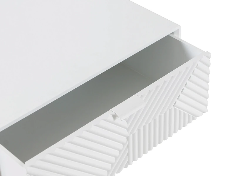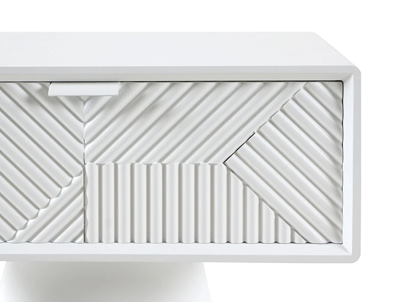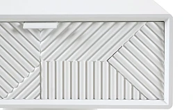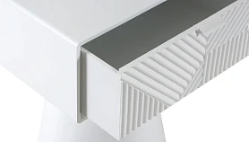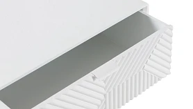 Фасад вкладного ящика украшен узором, который формируют трендовую «гофрированность». Скульптурная тумба Parex сама по себе является привлекательным элементом, который поможет в декорировании стильного пространства. Также она дает простор для проявления креативности. Сочетайте ее с различными вазами, лампами, статуэтками, подсвечниками, чтобы подчеркнуть уникальность интерьера.