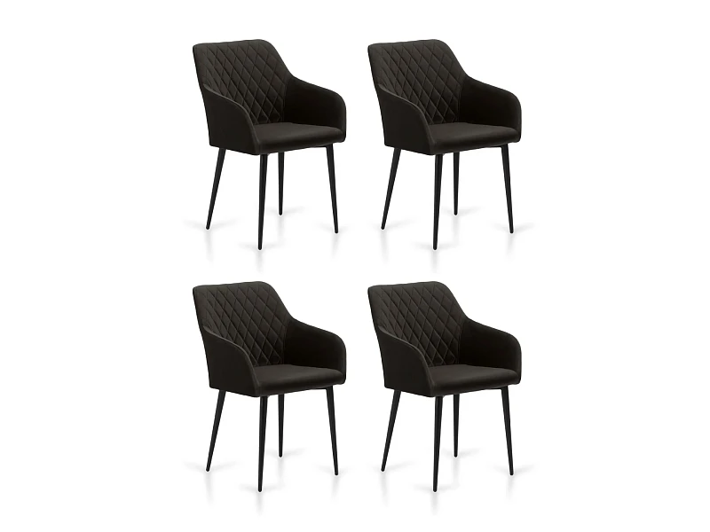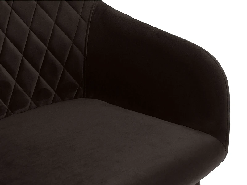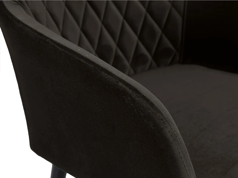 Роскошный и уютный стул в стиле арт-деко. Смотрится дорого, стильно и эффектно. Оно создано, чтобы очаровывать с первого взгляда. Плавные линии, изящные ножки, просторное сиденье и высокие подлокотники делают модель невероятно удобной для отдыха. Стильная отделка ромбом на спинке и сиденье в сочетании с благородным бархатом создает неповторимые переливы и придает стулу особую утонченность. Мягкий бархатистый велюр, высококачественный материал с повышенной износостойкостью. В качестве наполнителя используется литой (формованный) пенополиуретан высокой плотности. Металлические ножки черного матового цвета. На ножках предусмотрены специальные пластиковые накладки, которые придают стулу дополнительную устойчивость и защищают пол от царапин.