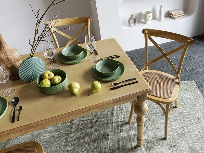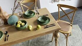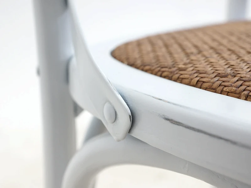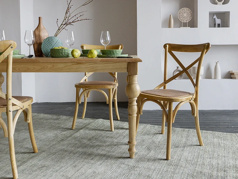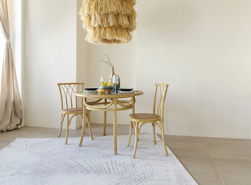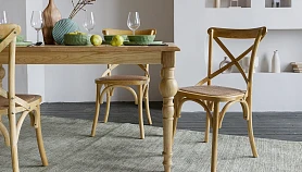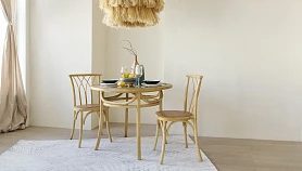 Bertram — классика, которая не выйдет из моды. В основе дизайна — традиционная форма венского стула. Характерные черты: тонкие, но устойчивые ножки, обтекаемая форма, спинка с крестообразными элементами на винтах, гнутые детали, сиденье из ротанга. Массив вяза обладает роскошной текстурой, прочностью и долговечностью. Bertram напоминает антикварный предмет мебели, эффект старения придаёт ему шарм и благородство.