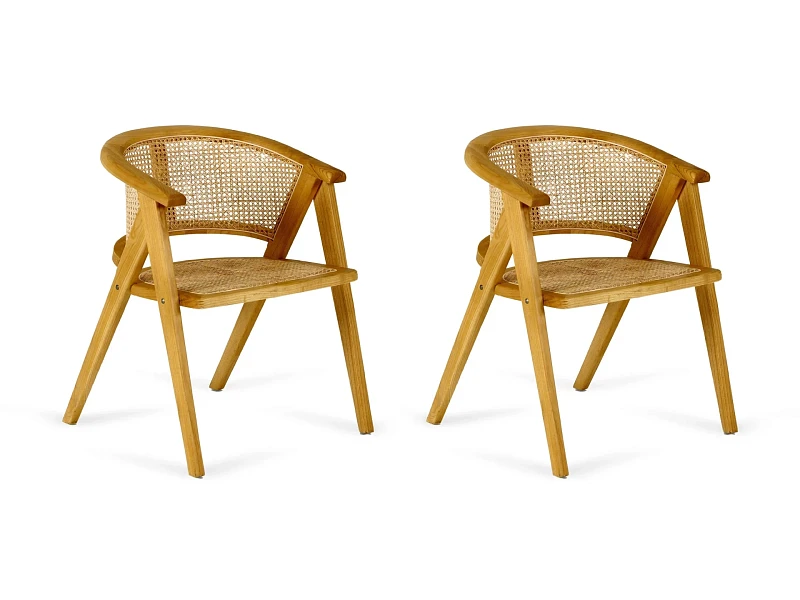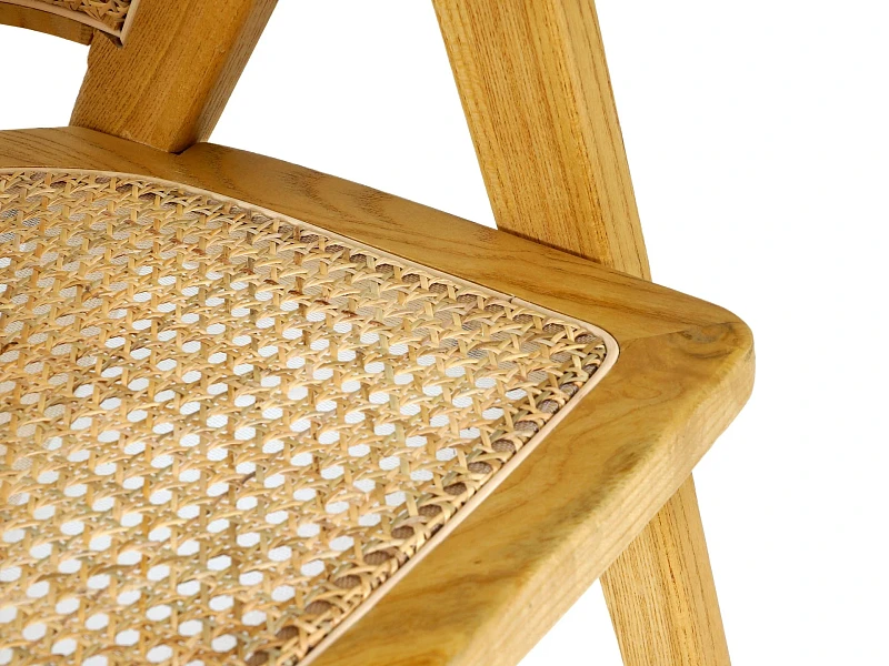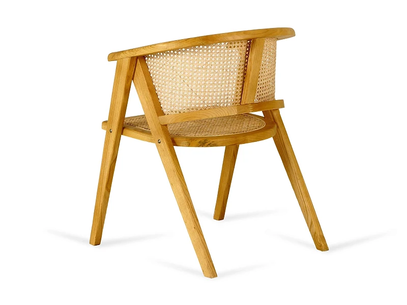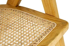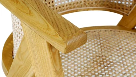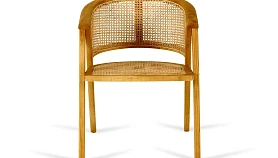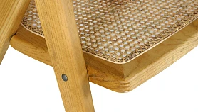 Материал каркаса и ножек - массив вяза, материал сиденья и спинки - натуральный ротанг. Наличие подпятников, предохраняющие от появления царапин на полу. Не рекомендуется использование на открытом воздухе и контакт с водой.