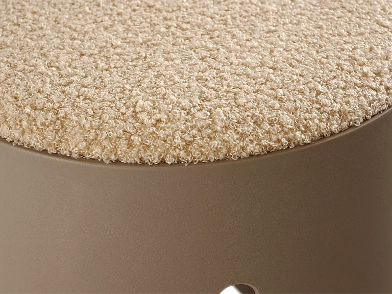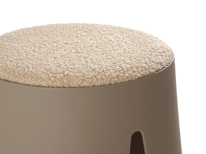Материал обивки сидения - искусственный мех, материал каркаса и ножек - пластик. Наличие подпятников, предохраняющих от царапания пола.