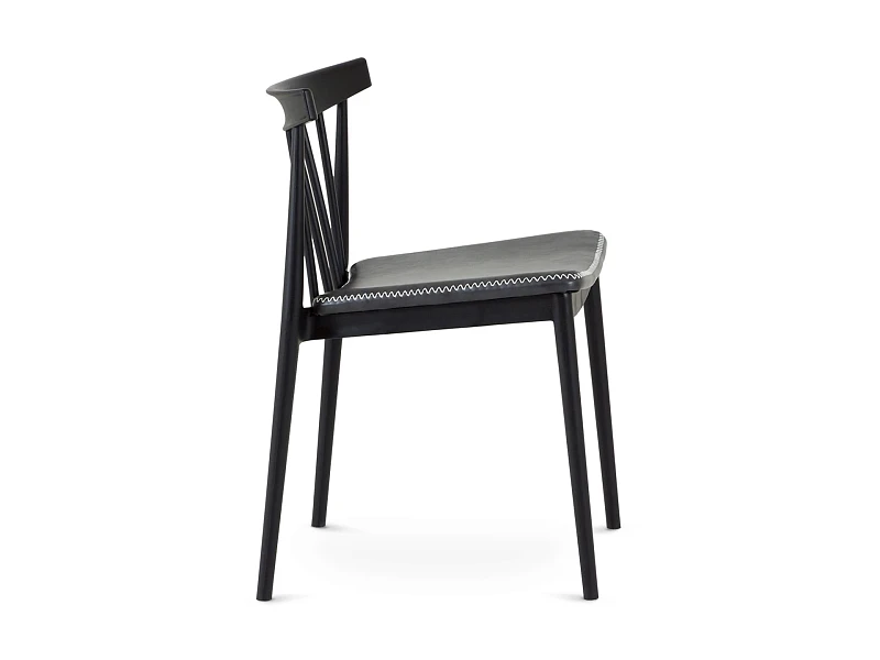 Morris — скульптурный и эстетичный стул, дизайн которого дерзко подмигивает прошлому. В основе элегантного внешнего вида — классические формы «виндзорского» стула. Спинка в выразительном графичном оформлении: струны-шесты сходятся у верхнего «гребня», поддерживая игру света в помещении. Создают комфортную опору для спины и снижают нагрузку на позвоночник. Широкое мягкое сиденье из экокожи, устойчивые веретенообразные ножки, плавные углы отвечают за эргономику, тактильность, динамику.