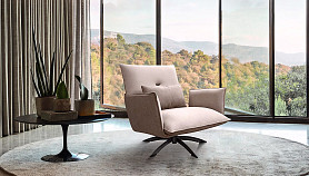 Если вы подбираете стильное и лаконичное кресло, то кресло коллекции «Таймс» станет идеальным выбором. Прямые узкие подлокотники, подчёркнутые декоративным кантом, не перегружают дизайн и делают кресло компактным. Наклон спинки обеспечивает оптимальное положение тела во время сидения. Модель на устойчивой металлической ножке, покрытой матовым лаком темного цвета, имеет функцию полного поворота. Погрузившись в него, вы ощутите невероятное удобство, благодаря тщательно спроектированной форме.