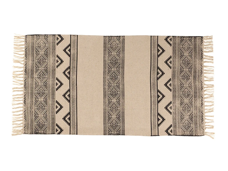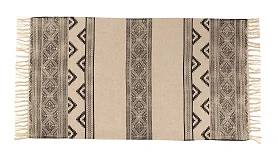 Пригоден как для домашних локаций, так и для зон с высокой проходимостью, например, для прихожей, коридора, лобби, лаундж-зоны. Привлекательный дизайн модели обеспечивают трендовые спокойные оттенки, акцентные элементы — геометрические узоры, бахрома, фактурная выразительность материала.