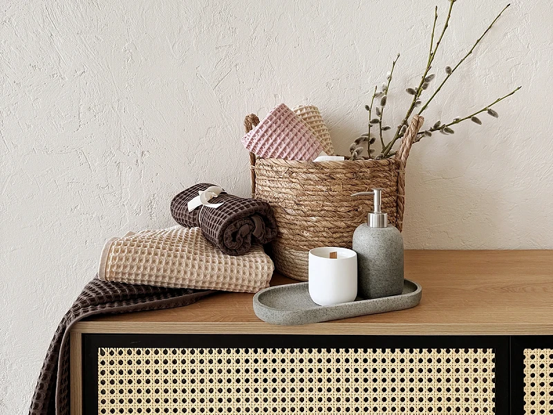 Полотенца вафельные в подарочной упаковке. Состоят из 100% хлопка, являются экологичными и гипоалергенными. Поскольку для них используются только натуральные материалы они не подвержены линьке, не оставляют ворс на теле и долго сохраняют свой цвет. Стильные и мягкие полотенца изготовленные в Турции за счёт своей премиальной плотности в 430 гр/м2 не деформируются после стирки, ячейка раскрывается и полотенце становится более объёмным и воздушным. Особые укрупнённые ячейки впитывают воду в два раза больше собственного веса. Чем они больше, тем плотнее и лучше держит форму ткань. Намного прочнее более дешевых аналогов с меньшей плотностью. Рекомендации по уходу: стирать при температуре не больше 30 градусов, отбеливание запрещено, отжим при низких оборотах, и гладить при низкой температуре. Изделие может дать незначительную усадку после первой стирки