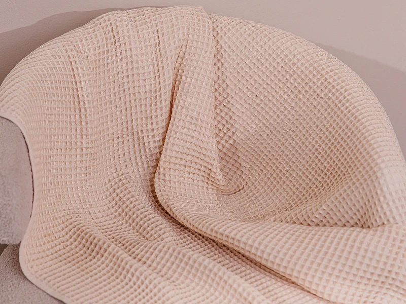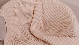 Благодаря натуральному составу – хлопок 100%, изделие гипоаллергенно, подходит для чувствительной кожи, приятно на ощупь, сохраняет тепло, также натуральный хлопок придает пледу прочность, сохраняя форму изделия! Тип ткани - вафельное полотно, плотностью 430 г/м2.