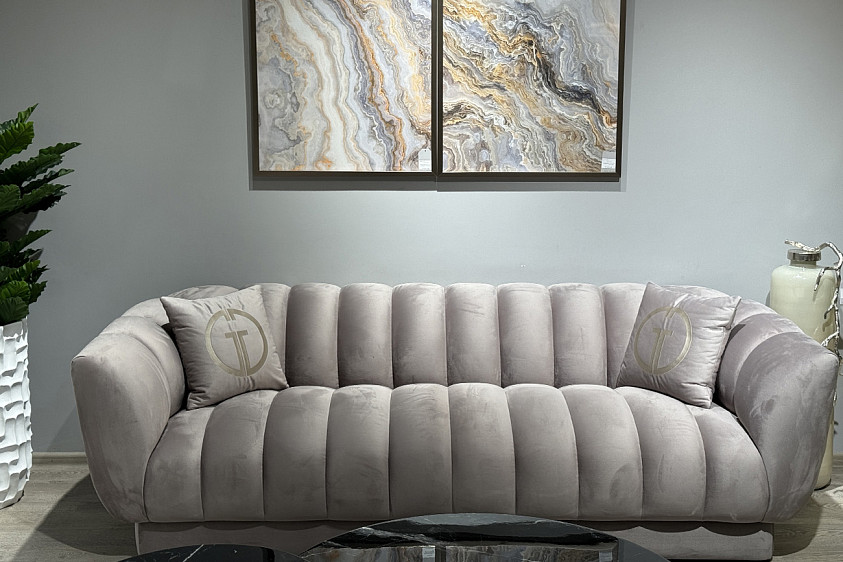 Диван Fabio трехместный велюр бежевый Colton1001-SERROS 239*95*72см, 2 подушки