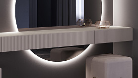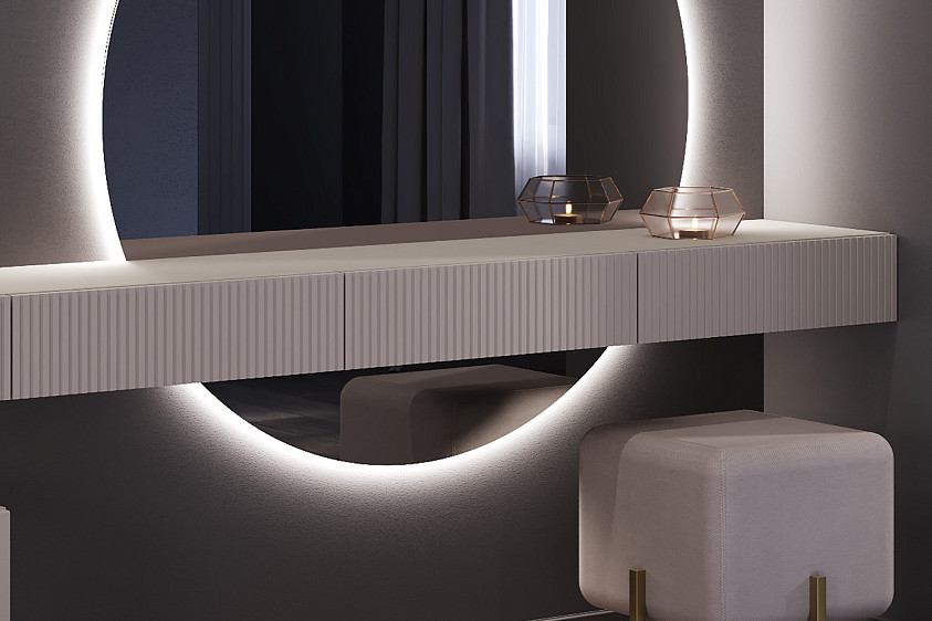 Внимание! Открывание ящиков происходит путем захвата фасада снизу, поэтому нельзя навешивать вплотную снизу другие модули коллекции Дольче (открывание фасадов будет затруднительным);