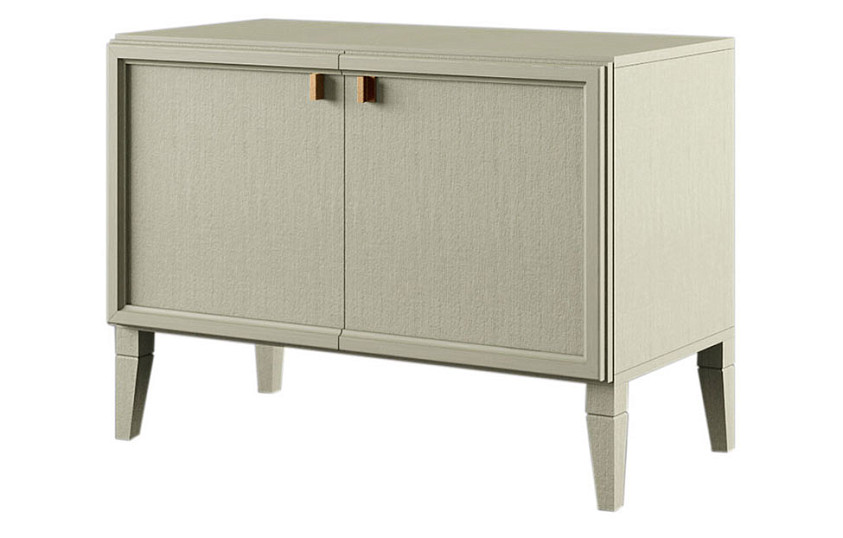 Для ее изготовления использованы исключительно натуральные материалы — все поверхности облицованы натуральным дубовым шпоном, а резные ножки и бруски на фасадах выполнены из массива дуба;