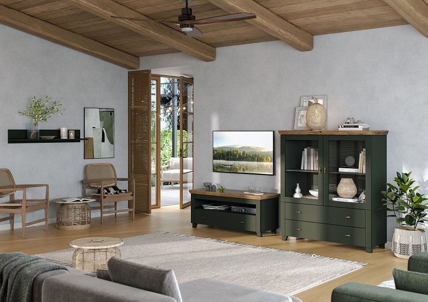 Тумба на деревянных опорах с 2-мя выдвижными ящиками;