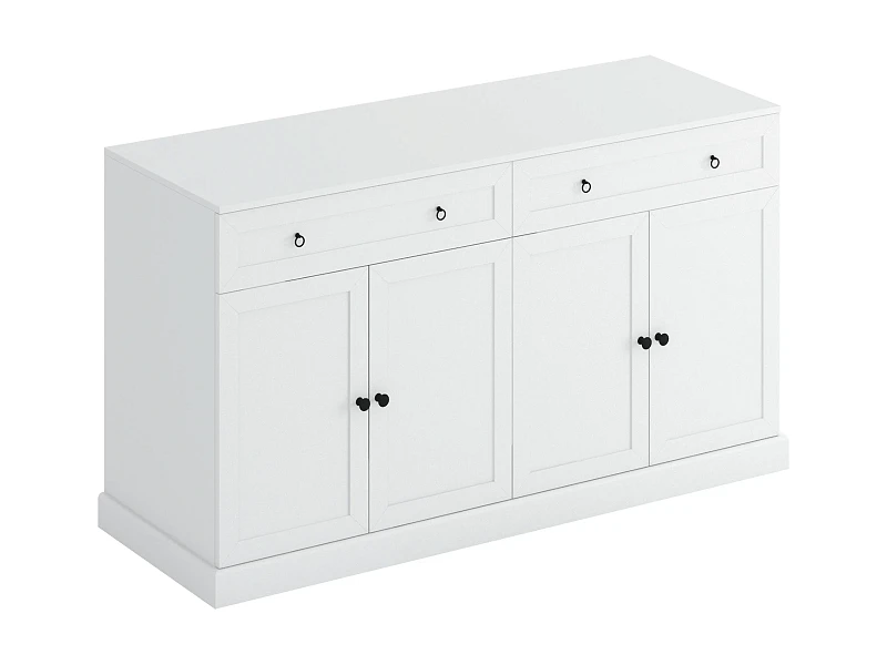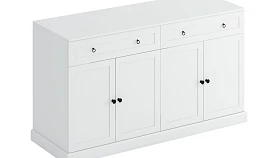 Тумба состоит из двух отделений под общей крышкой. В каждом отделении ящик и две двери. За дверями съемная полка.