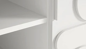 Тумба с двумя распашными дверями, расположенными в ряд. За каждой дверью отделение со съёмной полкой. Перестановка полок по высоте не предусмотрена.