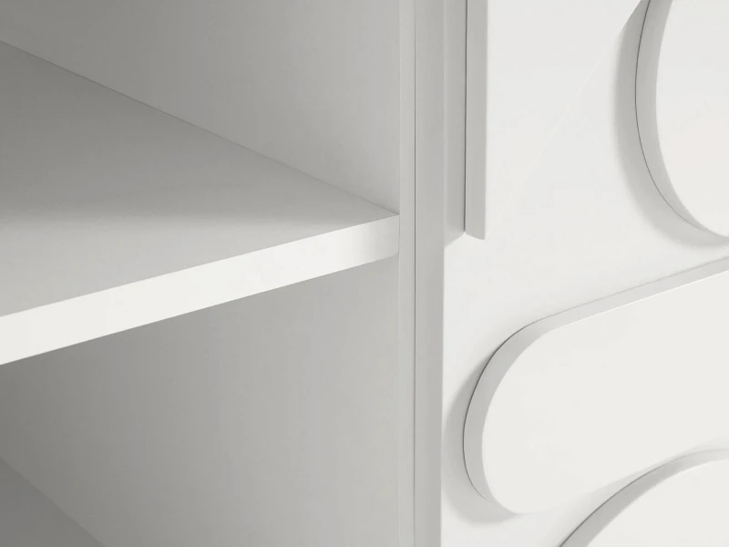 Фасады, боковые стенки и крышки изделий коллекции Milton выполнены из МДФ толщиной 16 мм. На фасадах и боковых стенках закреплены детали в виде геометрических фигур из МДФ толщиной 10 мм.