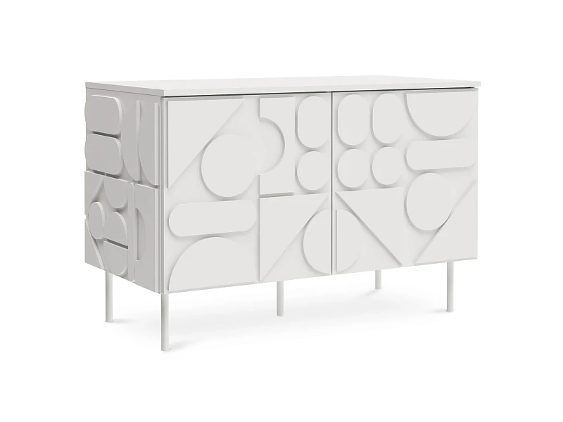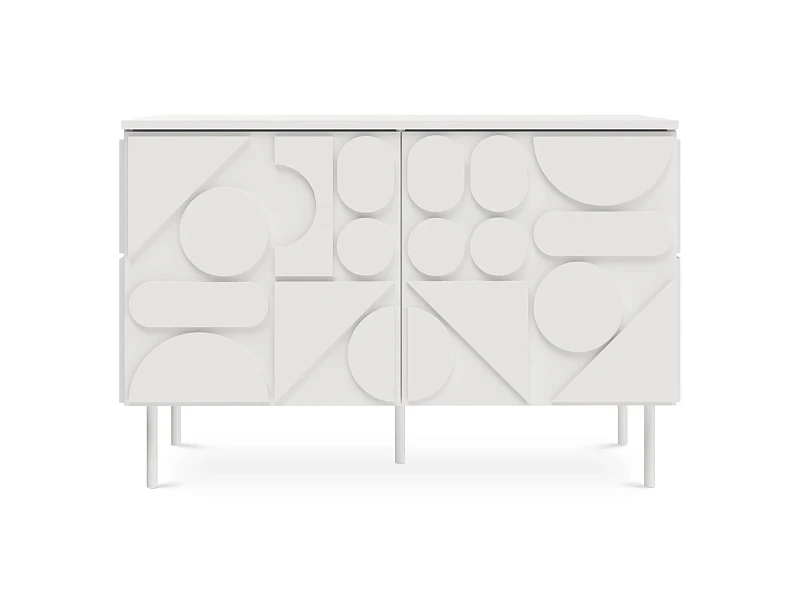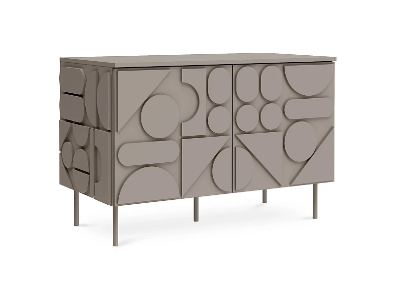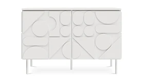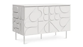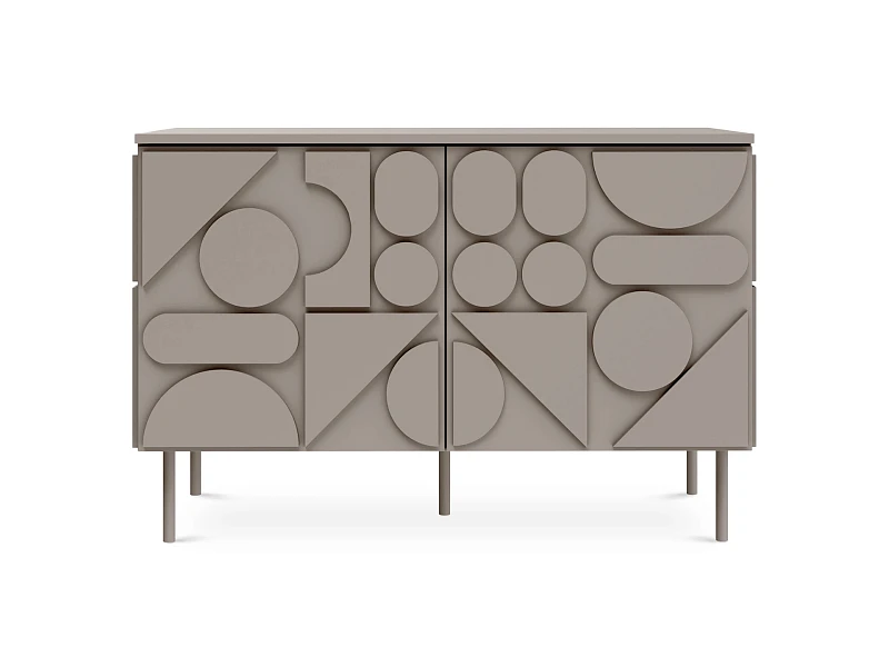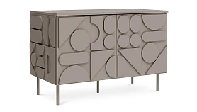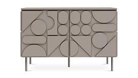 Milton — линейка корпусной мебели для хранения с динамичным характером. Яркой чертой дизайна являются геометрические фигуры, закреплённые на фасадах и боковых стенках. Они придают изделиям рельефность, оригинальность, выразительность. Серванты, комоды, тумбы напоминают объёмные 3-D головоломки. Архитектура которых строится на комплиментарности контрастов. Колоритный «верх» балансирует на изящных ножках из металла. Фасады без ручек открываются с помощью механизма «нажал-открыл».