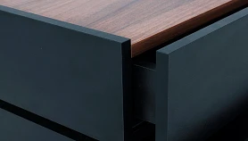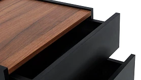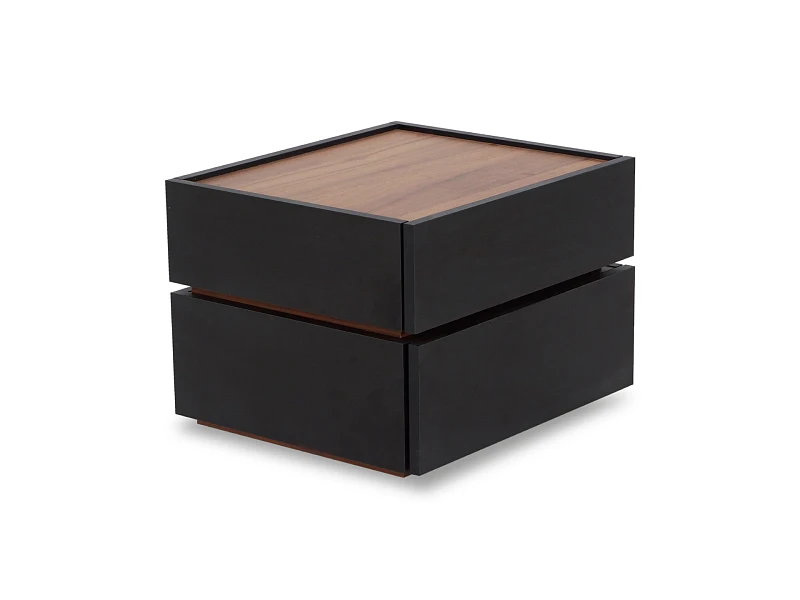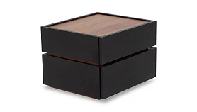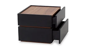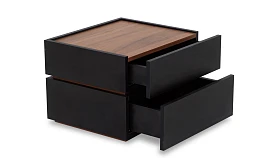 Тумба прикроватная с двумя ящиками. Выполнена из ЛДСП, дно ящиков ДВПО. Ящики на скрытых направляющих Push to open. Наличие фетровых подпятников.
