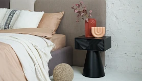 Тумба прикроватная Parex отличается художественной эстетикой. Фишка — игра геометрии. Прямоугольная столешница с вкладным ящиком изящно балансирует на верхушке конуса. Можно использовать как необычную прикроватную тумбу, элегантный приставной столик в гостиной, вместо консоли, полочки для мелочей в прихожей.