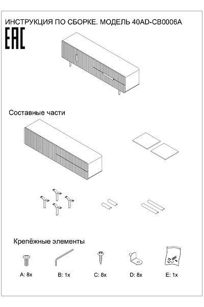 40AD-CB0006A Тумба под ТВ серая 180*42*55 см