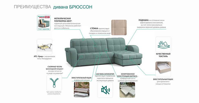 Диван Брюссон NEXT 22 120 К-1 с оттоманкой мини