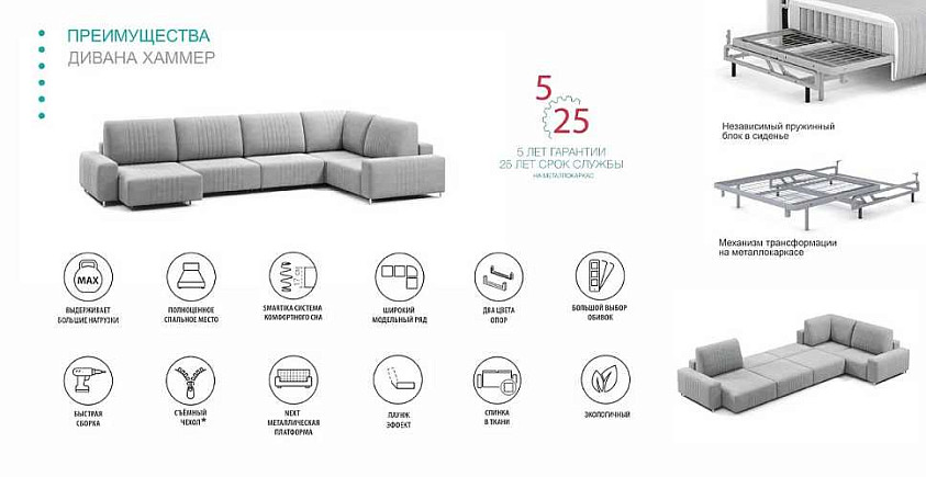 Угловой диван Хаммер NEXT с широкими подлокотниками с оттоманкой