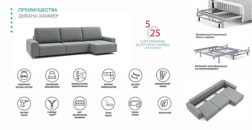 Угловой диван Хаммер NEXT с широкими подлокотниками