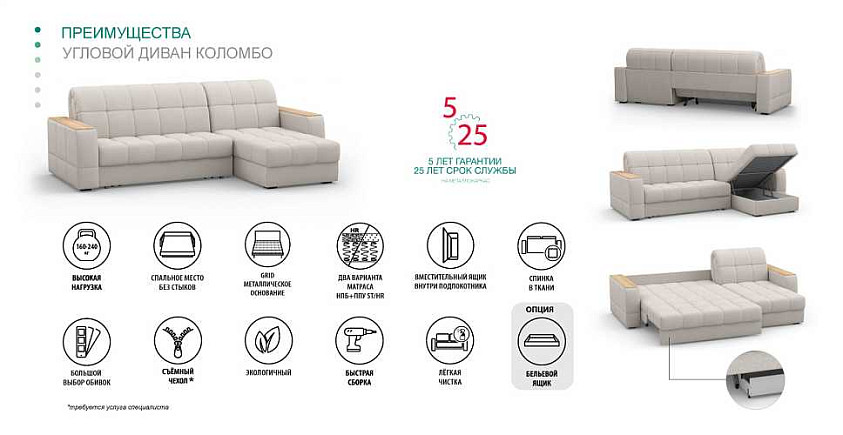 Угловой диван Коломбо 140 мини декор дуб каньон