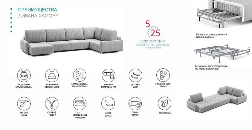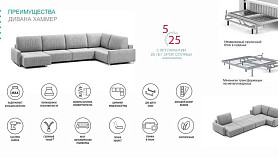 Угловой Угловой диван Хаммер NEXT с узкими подлокотниками с оттоманкой