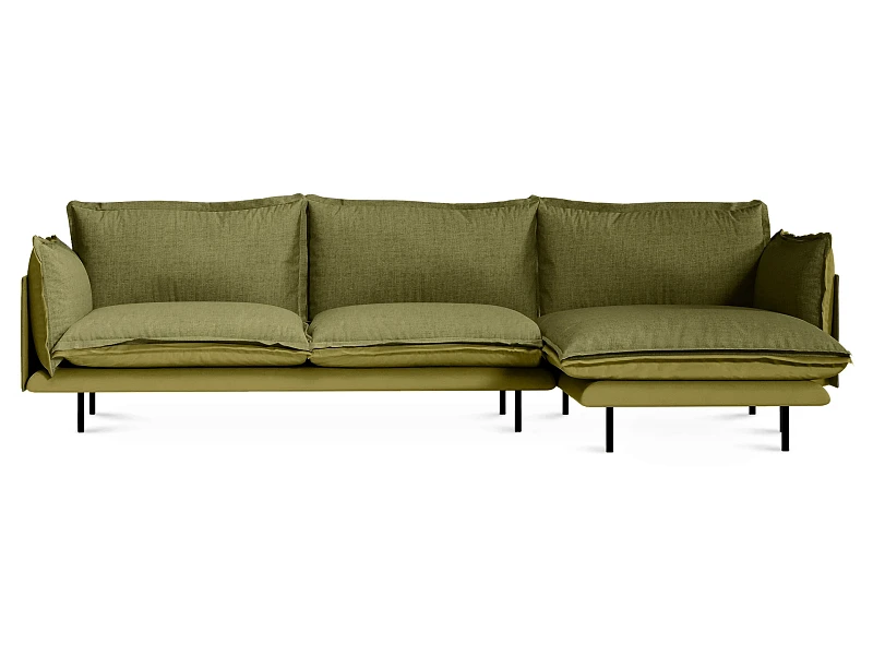Металлические опоры дивана обеспечивают устойчивость, они окрашены черной матовой эмалью. А также снабжены пластиковыми подпятниками и сохраняют напольное покрытие от царапин.
