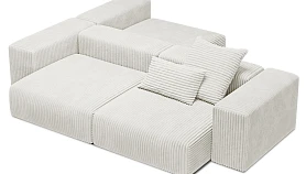 Семейство модульной мягкой мебели, способной легко интегрироваться в различные пространства от маленьких комнат до просторных помещений с открытой планировкой. Главная особенность в том, что модули позволяют обходиться без дополнительных предметов. Каждый элемент может сыграть любую роль от пуфа до столика. С ними можно организовать уютные уголки отдыха, спальные места, игровую площадку, мягкий остров в центре комнаты для большой компании. Вариативность конфигураций: п-образный, угловой, прямой — несколько блоков позволяют изменить обстановку за пару минут. Минималистичная геометрия, качественное исполнение поддержат гармоничный интерьер, в основе которого — функциональность, мобильность и комфорт.