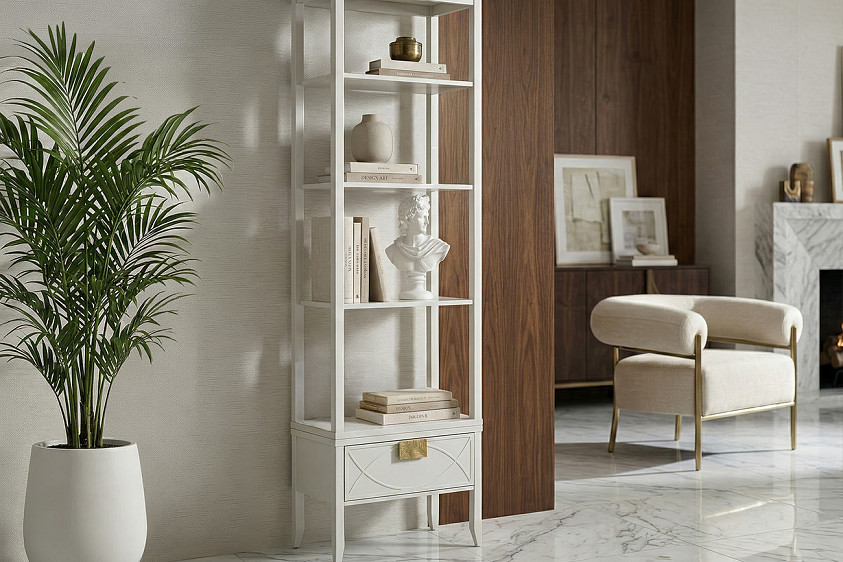 151SV-000018 Шкаф-витрина открытый узкий с тумбой прикроватной с 1-м ящиком