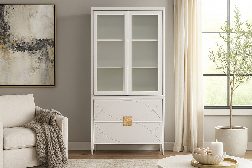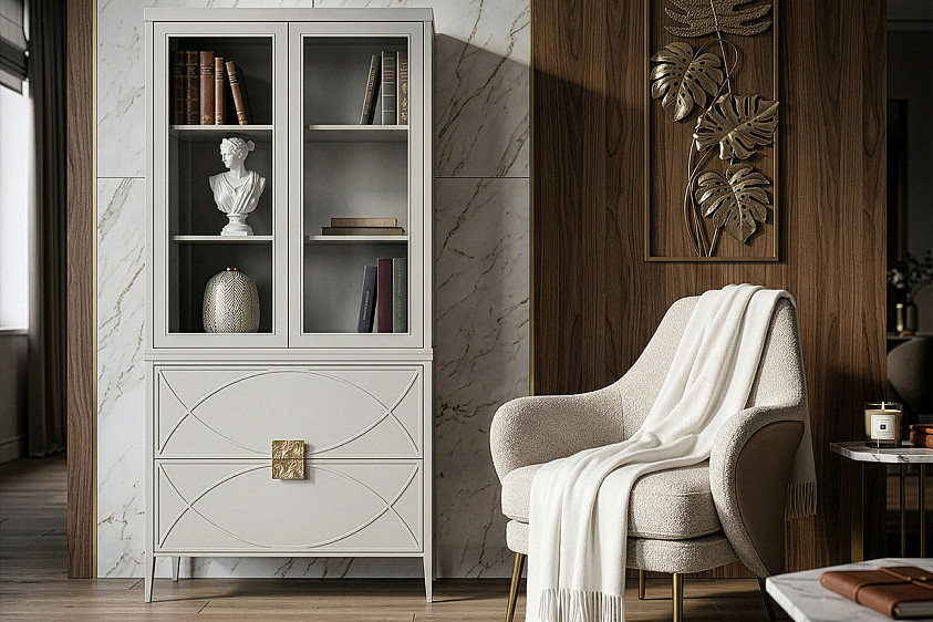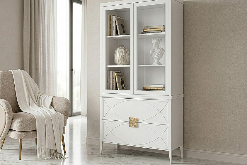 151SV-000025 Шкаф-витрина 2 стеклянных фасада с комодом с 2-мя ящиками