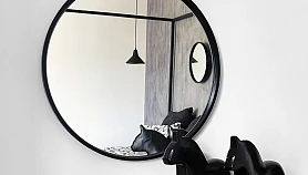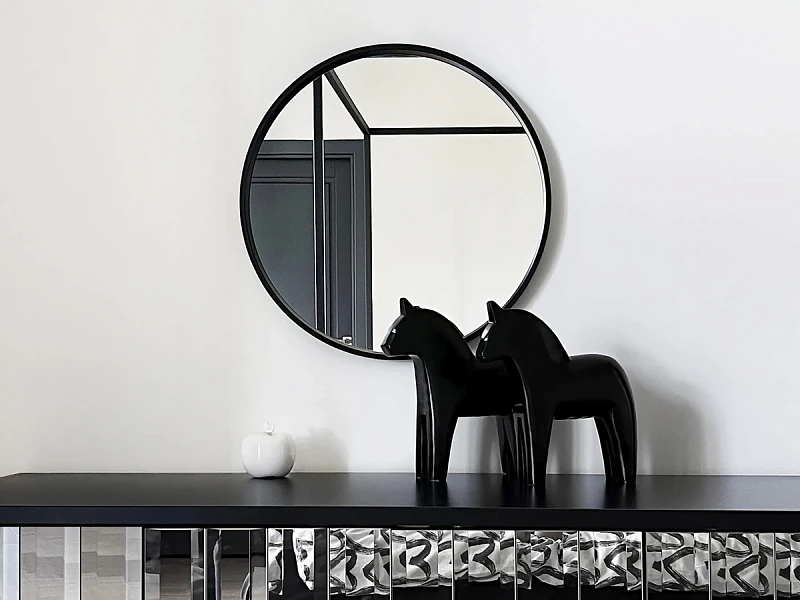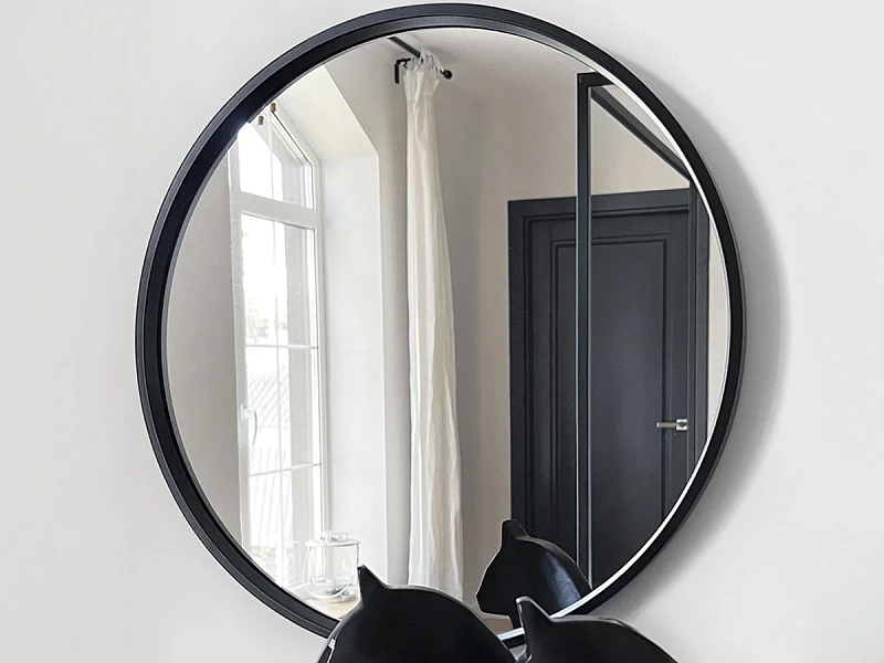 Серия лаконичных зеркал и журнальных столиков с зеркальными поверхностями станут изысканными элементами интерьера, выполняющими практические и эстетические функции. Архитектура предметов сочетает в себе минимализм, сдержанное обрамление и высокие качественные характеристики. Модели надежные, прочные, стилистически гибкие — органично впишутся в любые пространства. С помощью зеркал Focus можно визуально увеличить помещение, усилить объём освещения, задекорировать изъян стен, украсить обстановку, создать оригинальный эффект, а круглые столики с ножками из древесины хвойных пород повысят комфорт мягкой зоны, спальни, террасы, лаундж-локации. Зеркало настенное в раме. Крепление : накладной навес наклеенный на заднюю стенку, крючок для навеса, дюбель для крючка.